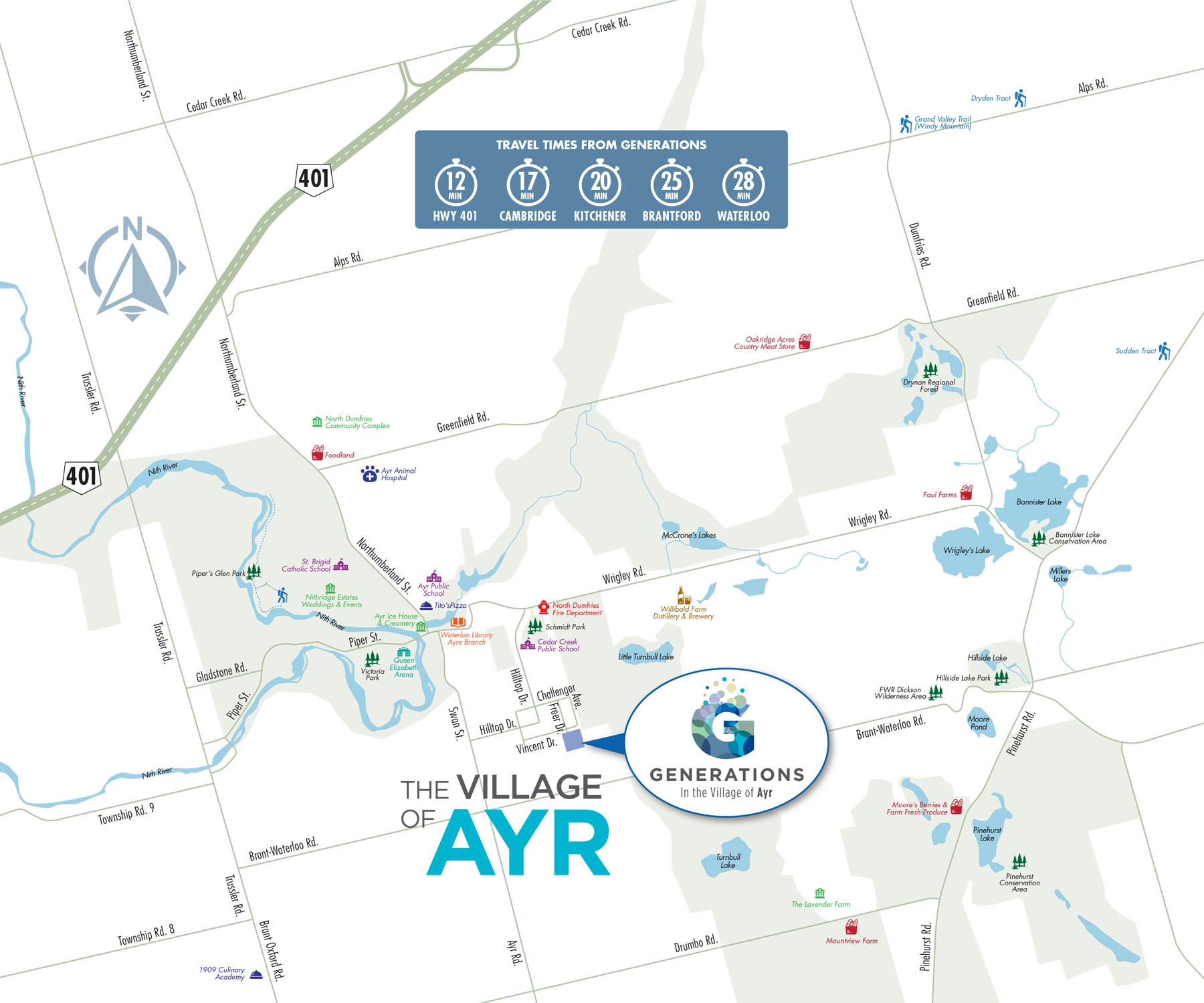 This is the Village of Ayr. Minutes from big city amenities, yet a world apart in beauty and quality of life. The next chapter of your family story starts here. Thoughtfully built homes for the modern generation of families... like yours. Welcome to Generations. Welcome home.